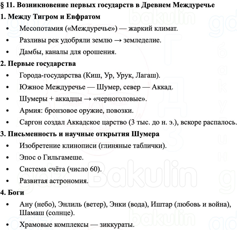 Краткое содержание и пересказ Параграф 11. Возникновение первых государств в Древнем Междуречье