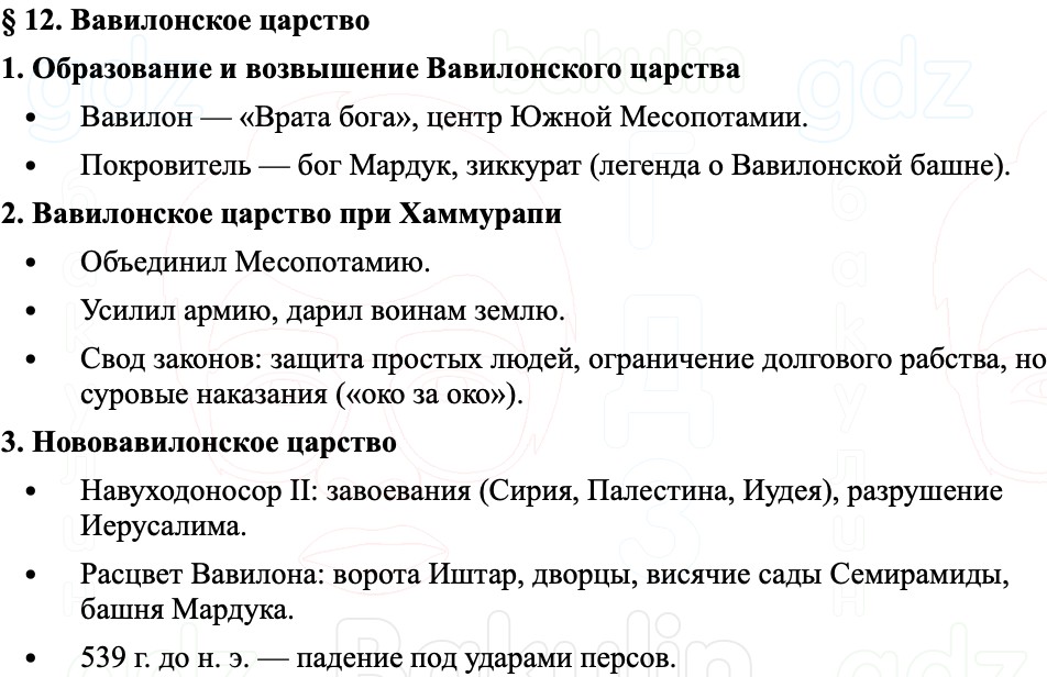 Краткое содержание и пересказ Параграф 12. Вавилонское царство