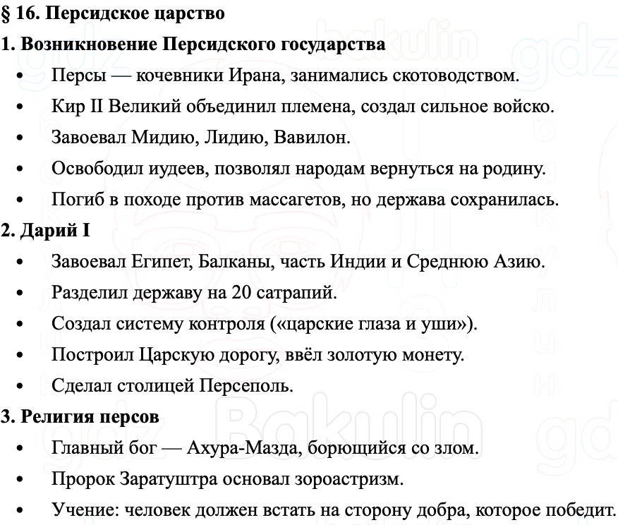 Краткое содержание и пересказ Параграф 16. Персидское царство