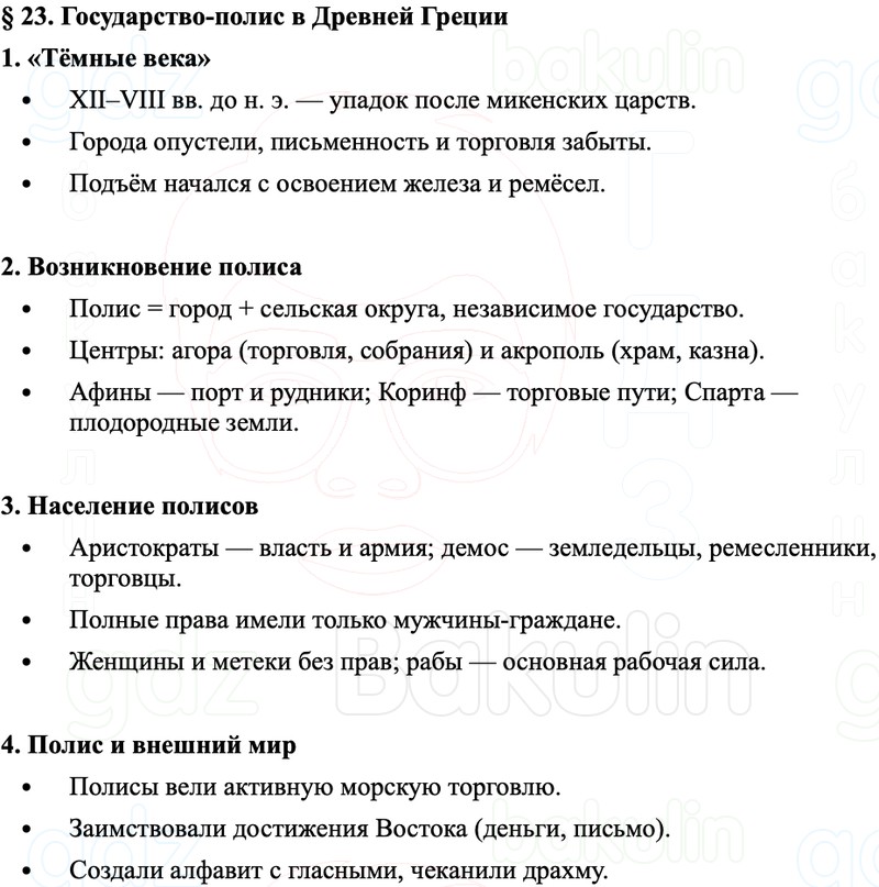 Краткое содержание и пересказ Параграф 23. Государство-полис в Древней Греции