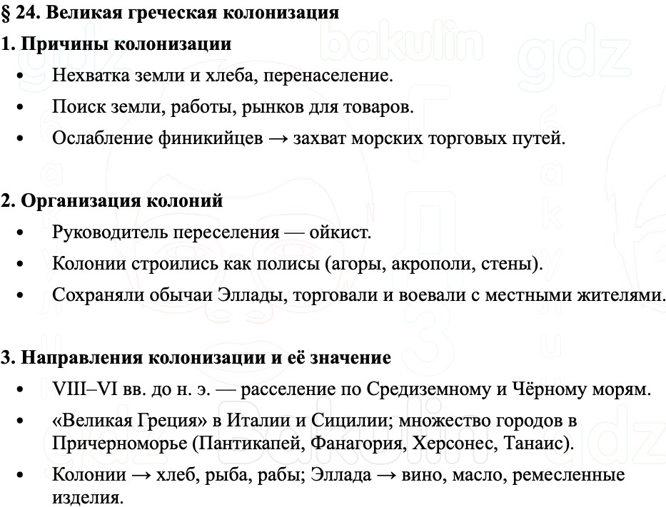 Краткое содержание и пересказ Параграф 24. Великая греческая колонизация