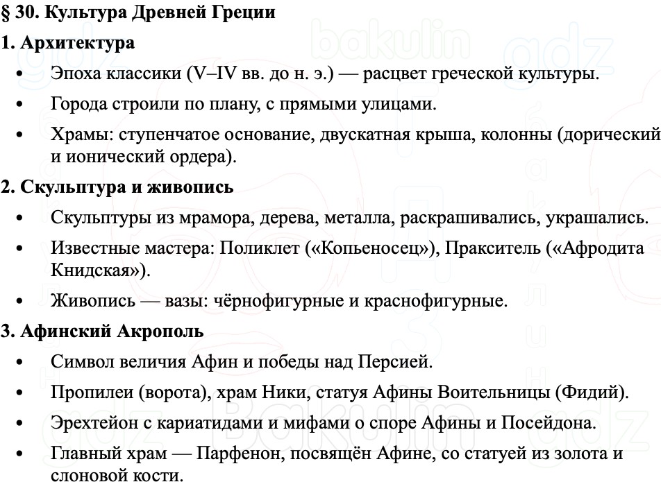 Краткое содержание и пересказ Параграф 30 Культура Древней Греции