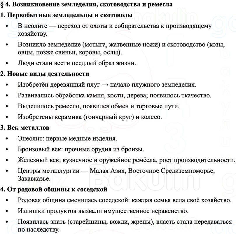 Краткое содержание и пересказ Параграф 4. Возникновение земледелия, скотоводства и ремесла