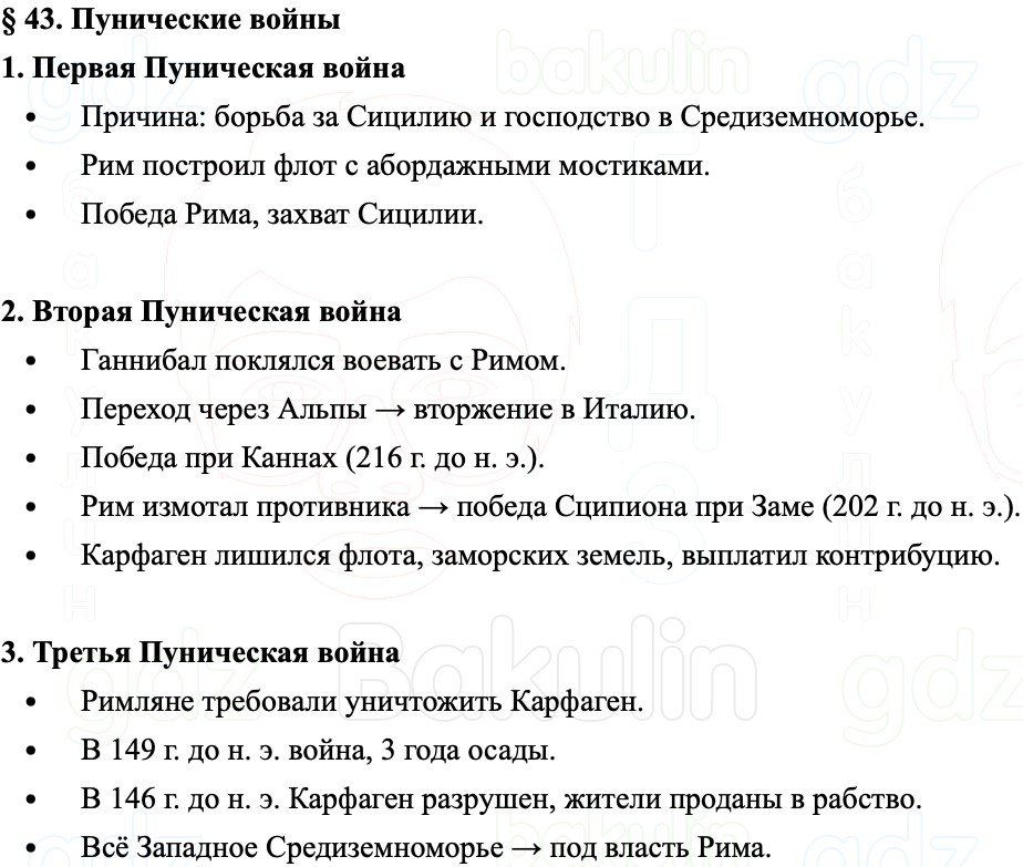 Краткое содержание и пересказ Параграф 43 Пунические войны