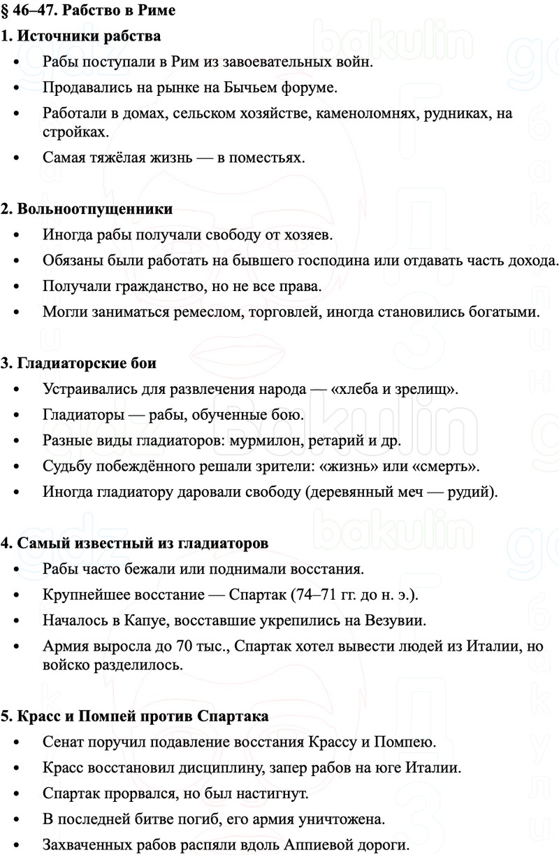 Краткое содержание и пересказ Параграф 46–47 Рабство в Риме