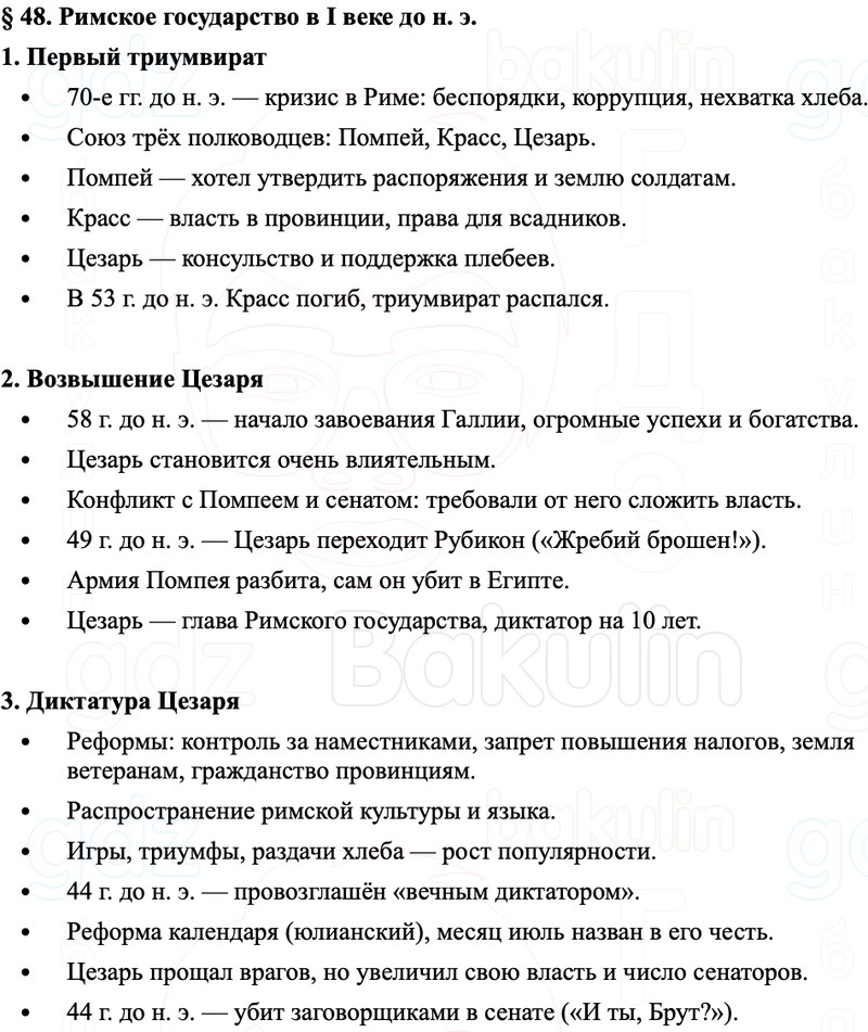 Краткое содержание и пересказ Параграф 48 Римское государство в I веке до н э