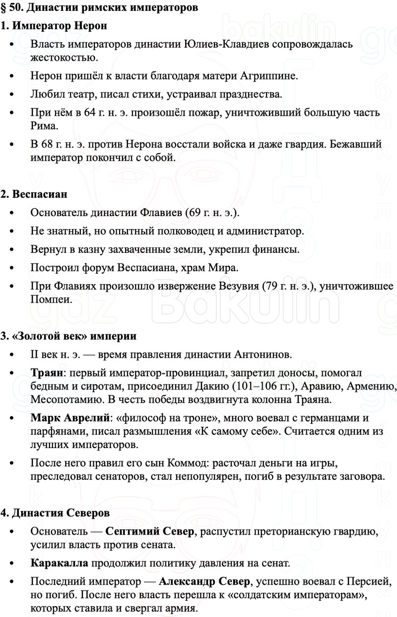 Краткое содержание и пересказ Параграф 50 Династии римских императоров