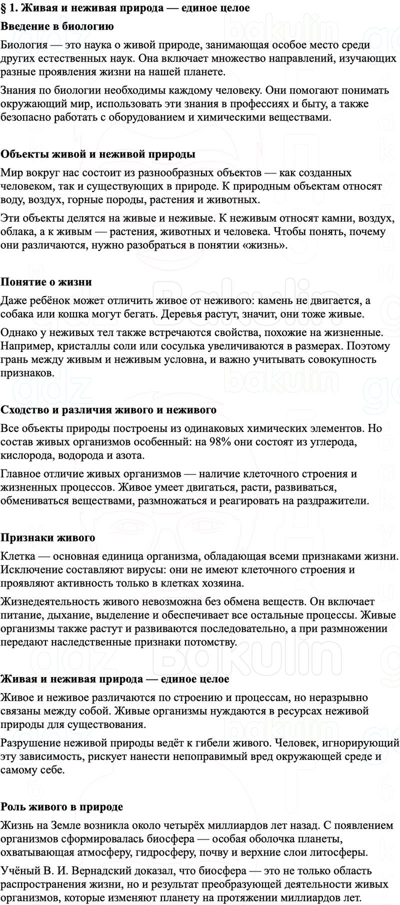 Краткое содержание пересказ Параграф 1. Живая и неживая природа — единое целое