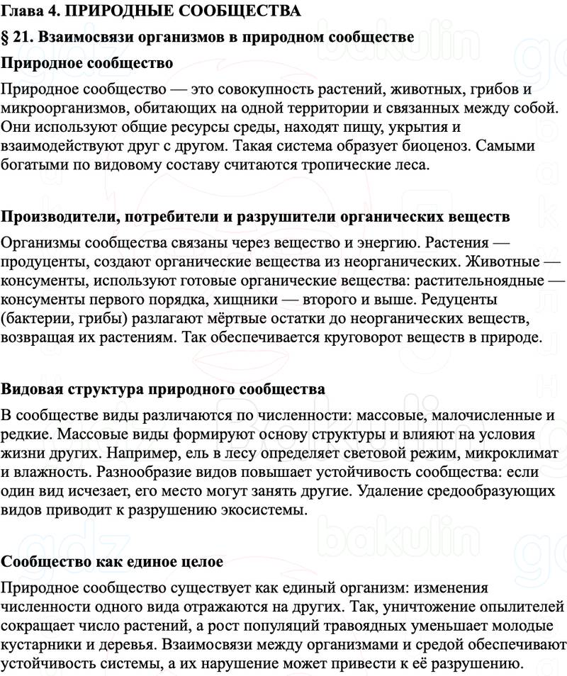 Краткое содержание пересказ Параграф 21. Взаимосвязи организмов в природном сообществе
