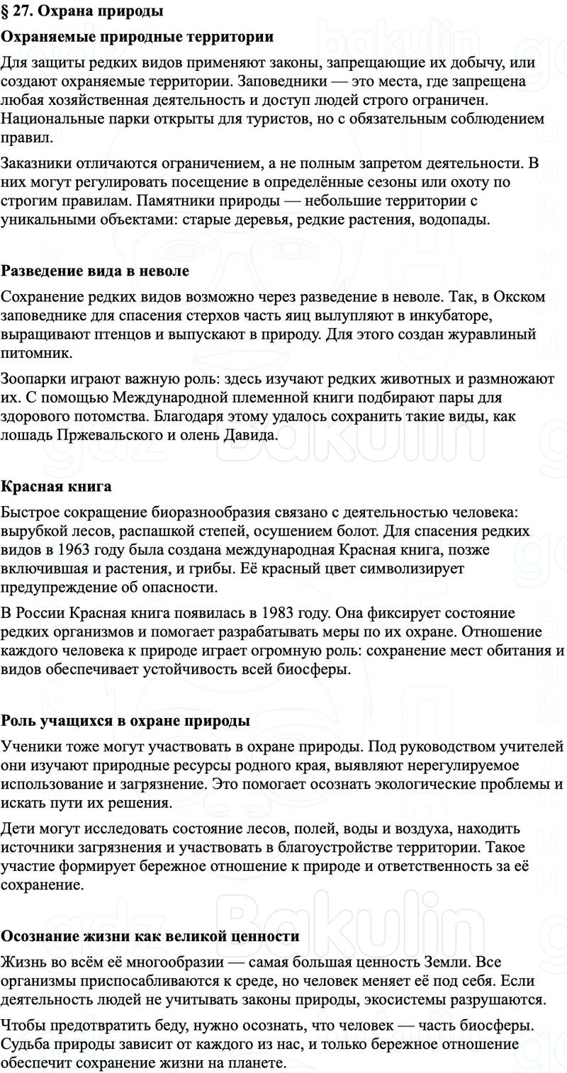 Краткое содержание пересказ Параграф 27. Охрана природы