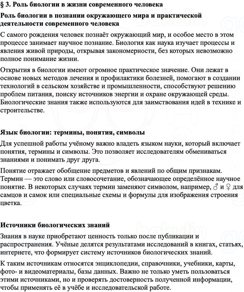 Краткое содержание пересказ Параграф 3. Роль биологии в жизни современного человека