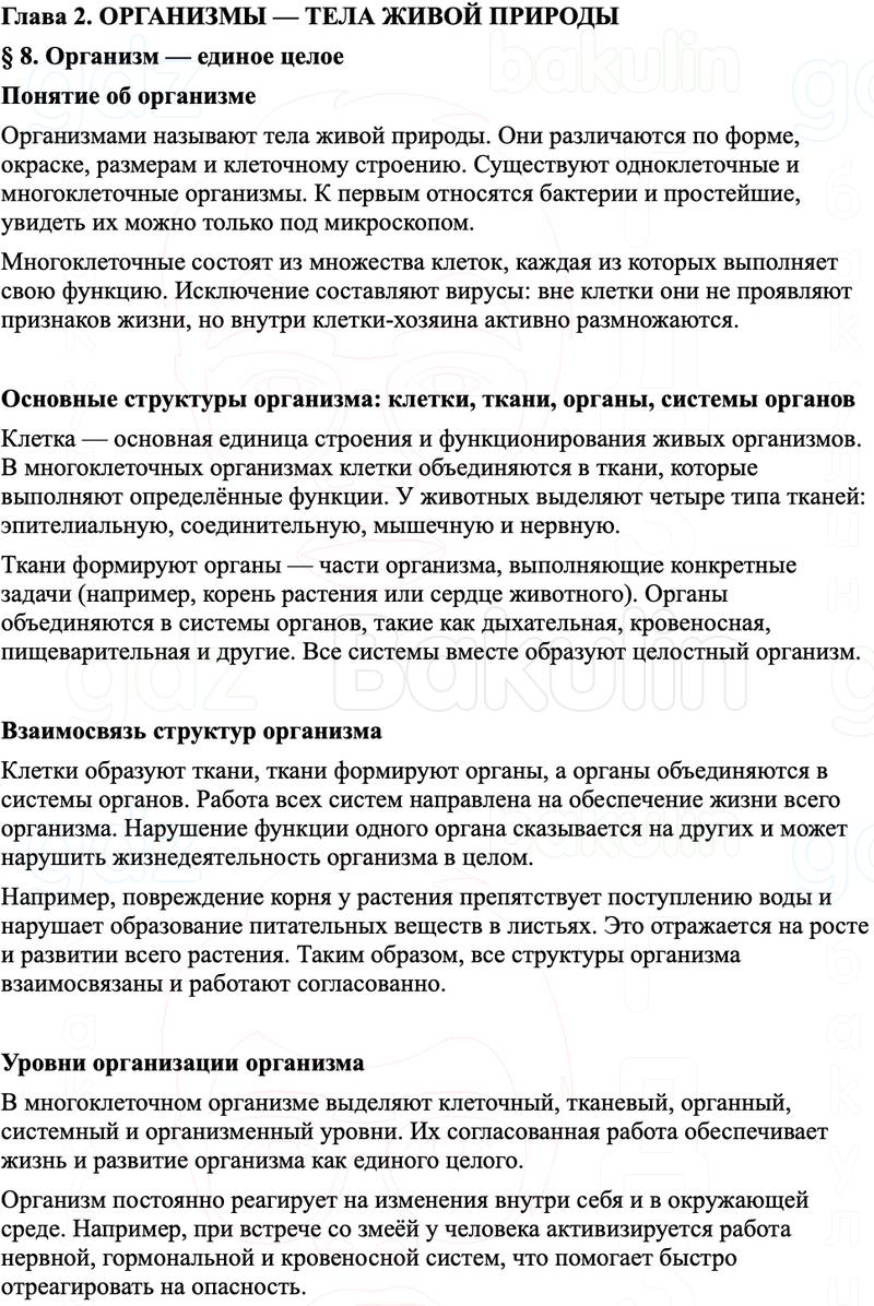 Краткое содержание пересказ Параграф 8. Организм — единое целое