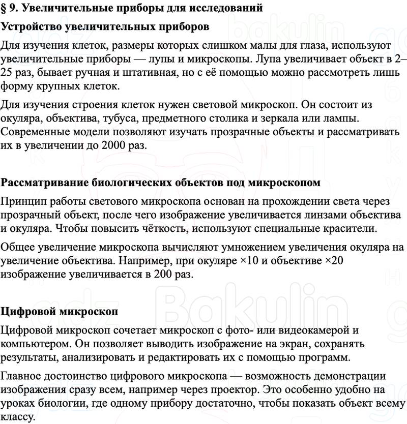 Краткое содержание пересказ Параграф 9. Увеличительные приборы для исследований