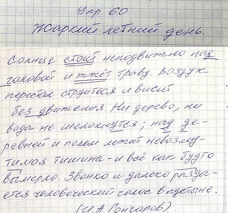 П..хать землю, на соседн..м3 огород.., уча(?)ствовать в уборк.. урожая, вые..жает на комбайн.., в сер(?)ёзной брош..ре2, разд..ваться в выш..не, солов(?)иную трель, налево по турис(?)ской тропе, продвигаться вперёд скво..ь ч..щу, ж..леть ребёнка, о неуклюж..м косолап..м медвед.., труслив..м зайц.. и ло..кой обез(?)яне, по щ..чьему веленью, нал..вные яблоки на ветк.., тяжёл.. колос(?)я пшеницы.