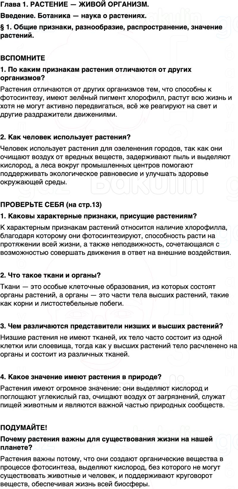 Параграф 1. Общие признаки, разнообразие, распространение, значение растений.