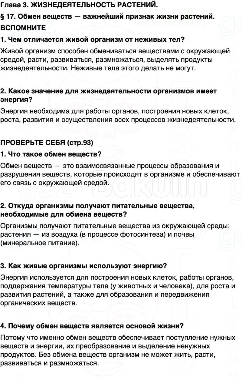 Параграф 17. Обмен веществ — важнейший признак жизни растений.