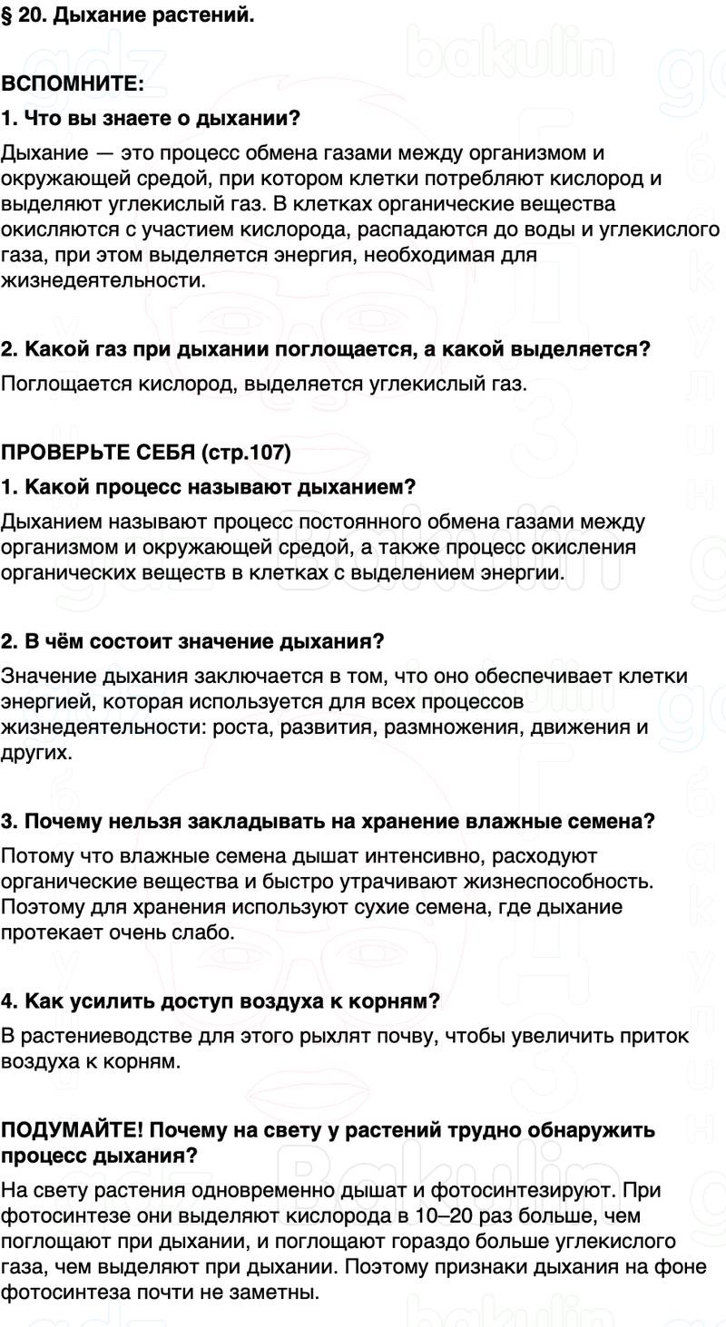 ПОДУМАЙТЕ! Почему на свету у растений трудно обнаружить процесс дыхания? Каковы отличительные особенности процессов фотосинтеза и дыхания и какова взаимосвязь между ними?