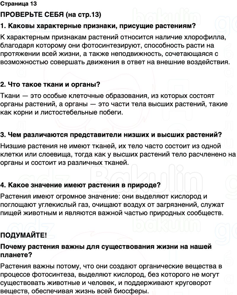 1. Каковы характерные признаки, присущие растениям?
