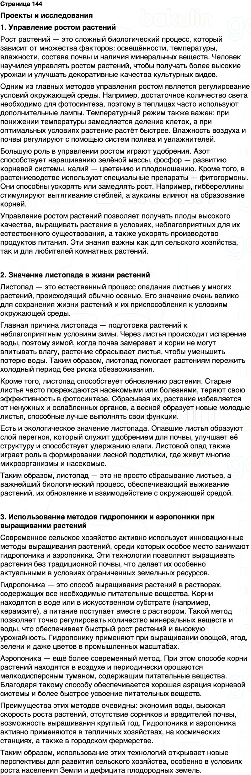 Проекты и исследования 1. Управление ростом растений. 2. Значение листопада в жизни растений. 3. Использование методов гидропоники и аэропоники при выращивании растений.