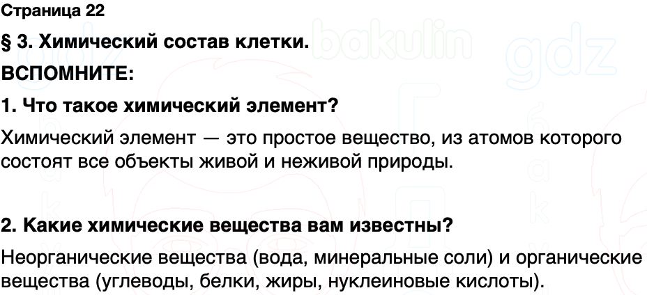 § 3. Химический состав клетки. ВСПОМНИТЕ: 1. Что такое химический элемент?