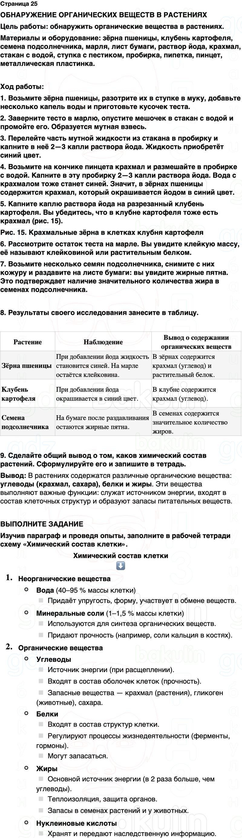 Изучив параграф и проведя опыты, заполните в рабочей тетради схему «Химический состав клетки».