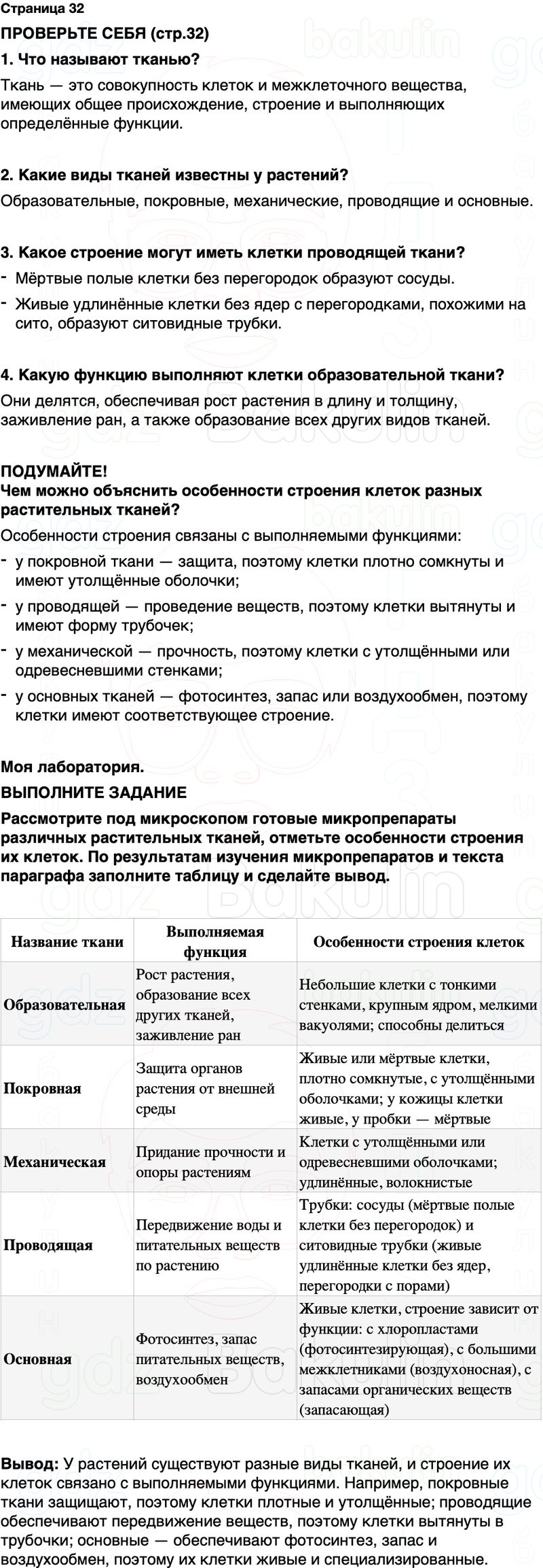 ПОДУМАЙТЕ! Чем можно объяснить особенности строения клеток разных растительных тканей?