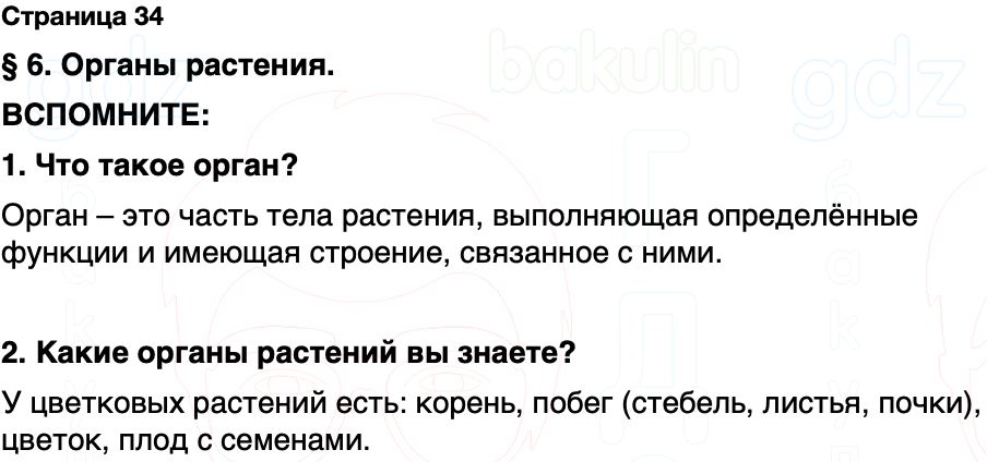 § 6. Органы растения. ВСПОМНИТЕ: 1. Что такое орган?