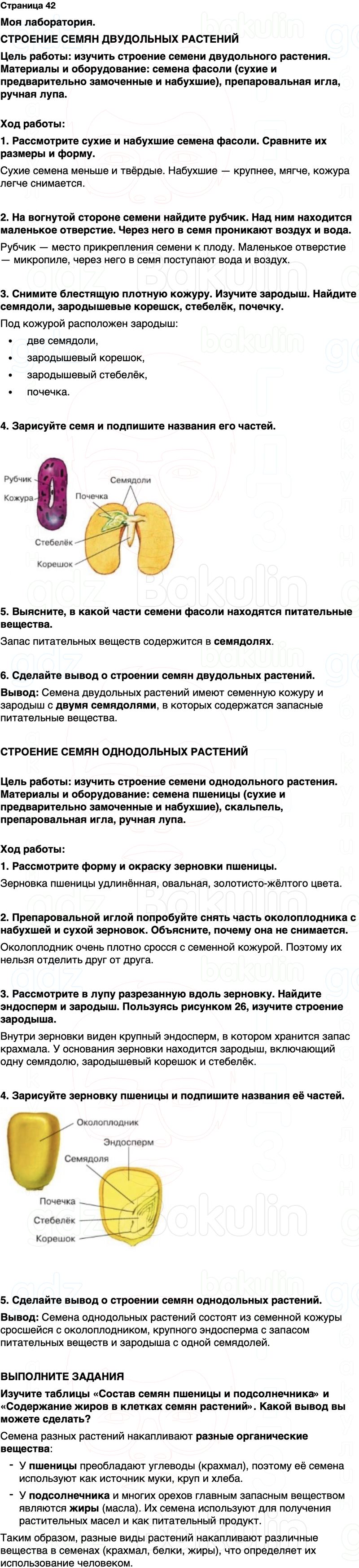 5. Выясните, в какой части семени фасоли находятся питательные вещества.