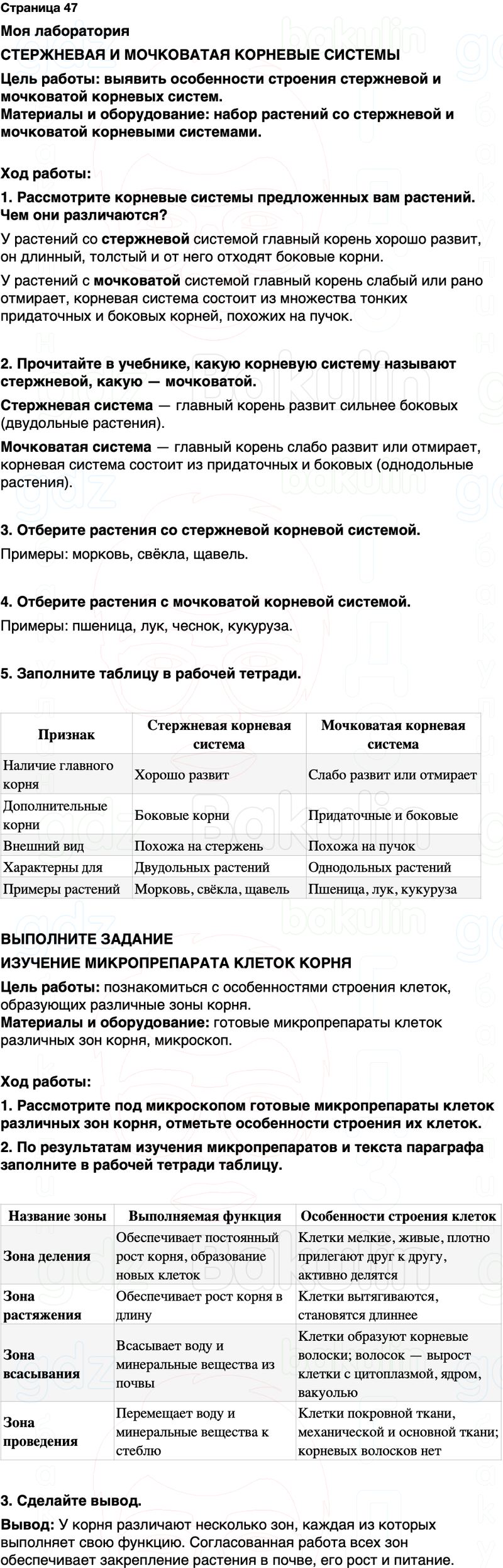 Материалы и оборудование: набор растений со стержневой и мочковатой корневыми системами.