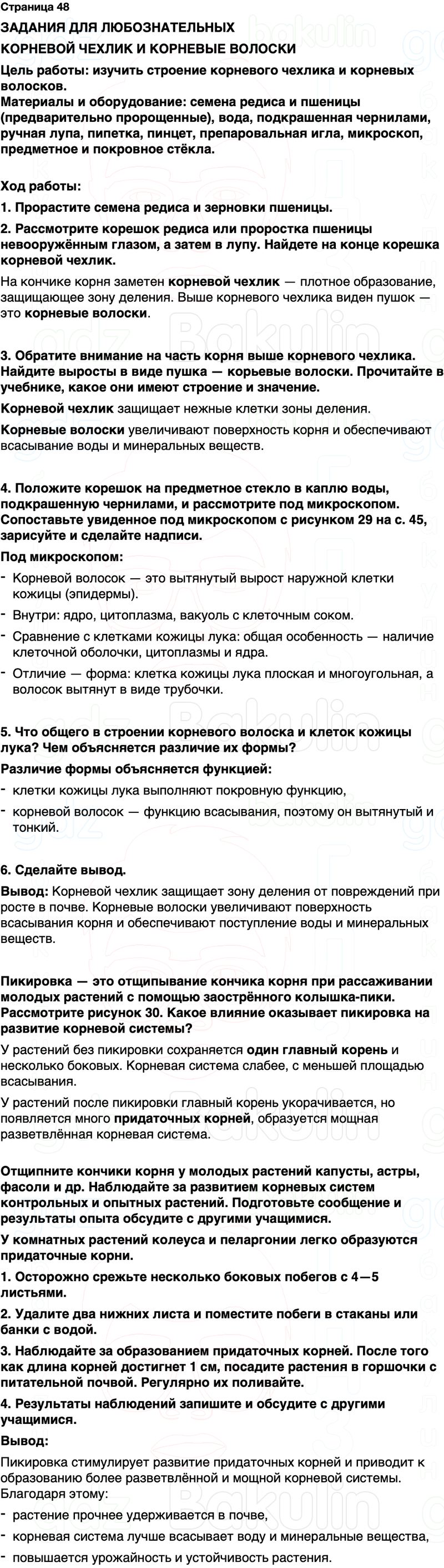 Отщипните кончики корня у молодых растений капусты, астры, фасоли и др. Наблюдайте за развитием корневых систем контрольных и опытных растений. Подготовьте сообщение и результаты опыта обсудите с другими учащимися.