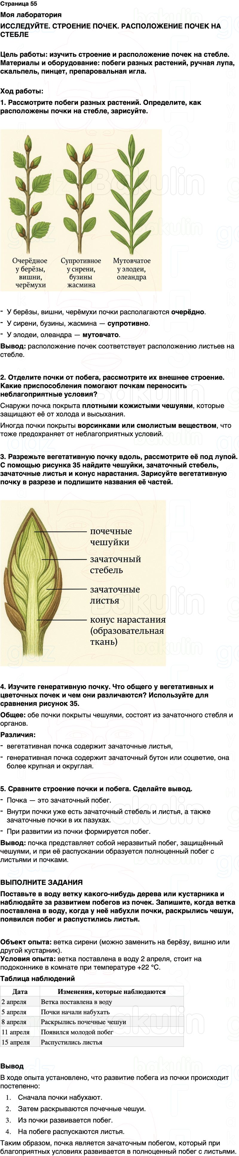 5. Сравните строение почки и побега. Сделайте вывод.