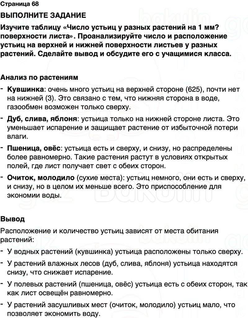Изучите таблицу «Число устьиц у разных растений на 1 мм? поверхности листа». Проанализируйте число и расположение устьиц на верхней и нижней поверхности листьев у разных растений. Сделайте вывод и обсудите его с учащимися класса.