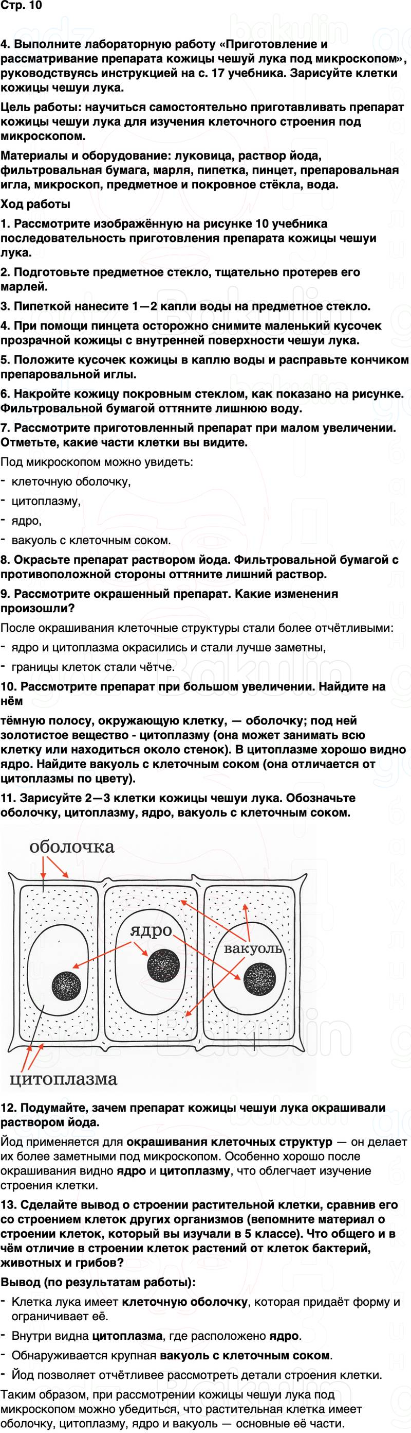 1. Рассмотрите изображённую на рисунке 10 учебника последовательность приготовления препарата кожицы чешуи лука.
