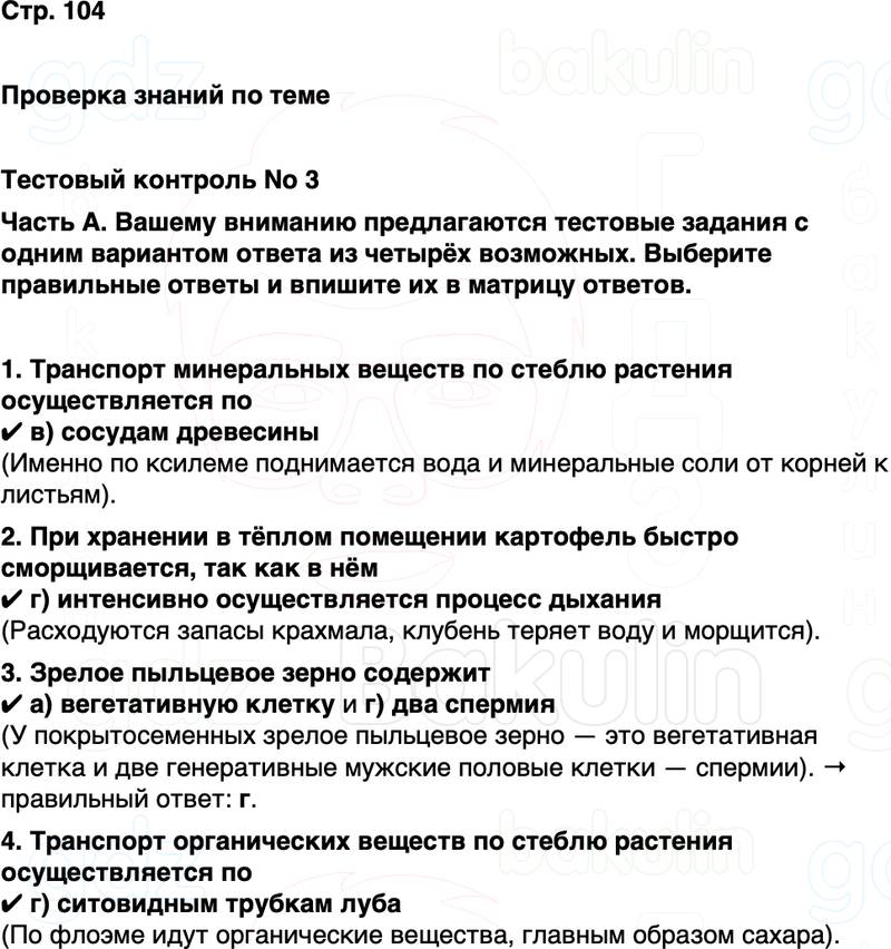1. Транспорт минеральных веществ по стеблю растения осуществляется по