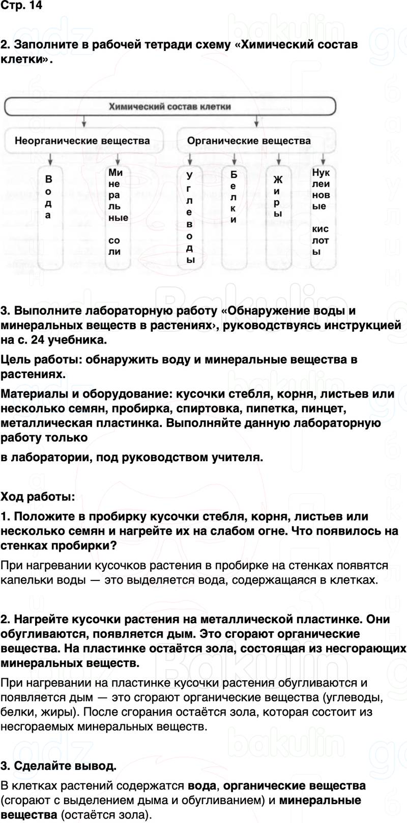 2. Заполните в рабочей тетради схему «Химический состав клетки».