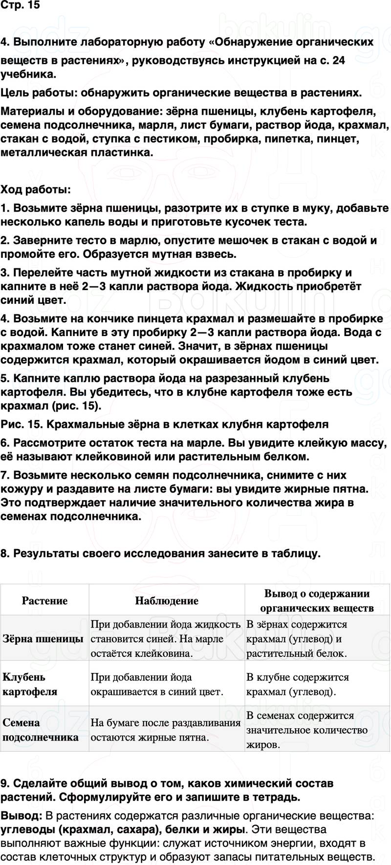 веществ в растениях», руководствуясь инструкцией на с. 24 учебника.