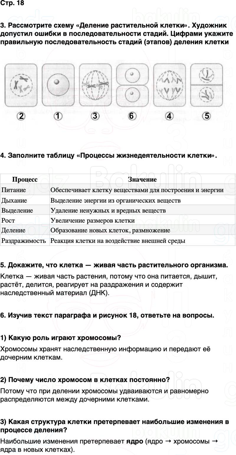 6. Изучив текст параграфа и рисунок 18, ответьте на вопросы. 1) Какую роль играют хромосомы?