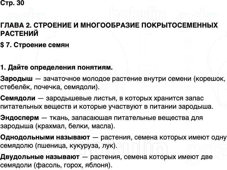 ГЛАВА 2. СТРОЕНИЕ И МНОГООБРАЗИЕ ПОКРЫТОСЕМЕННЫХ РАСТЕНИЙ $ 7. Строение семян