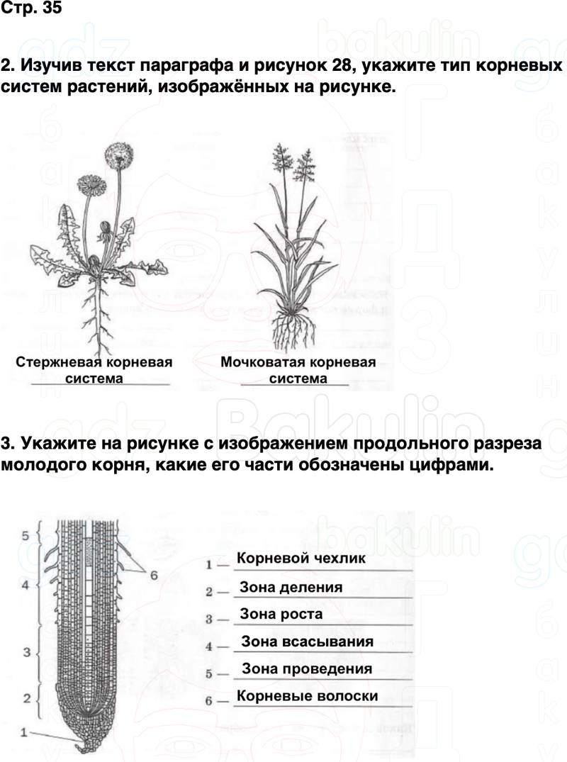 2. Изучив текст параграфа и рисунок 28, укажите тип корневых систем растений, изображённых на рисунке.