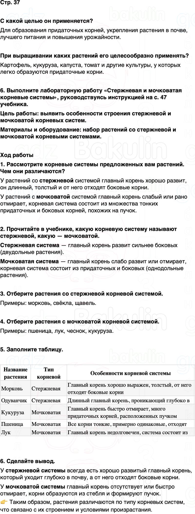 6. Выполните лабораторную работу «Стержневая и мочковатая корневые системы», руководствуясь инструкцией на с. 47 учебника.