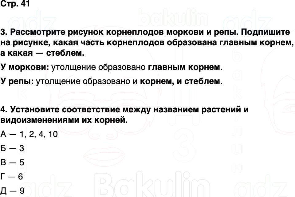 3. Рассмотрите рисунок корнеплодов моркови и репы. Подпишите на рисунке, какая часть корнеплодов образована главным корнем, а какая — стеблем.