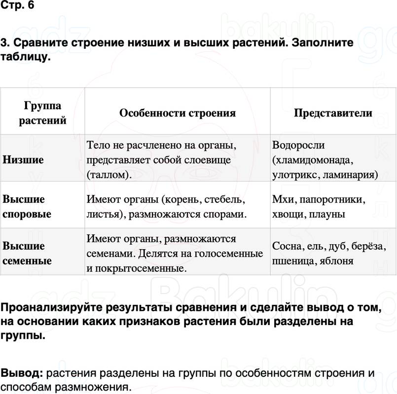 3. Сравните строение низших и высших растений. Заполните таблицу.
