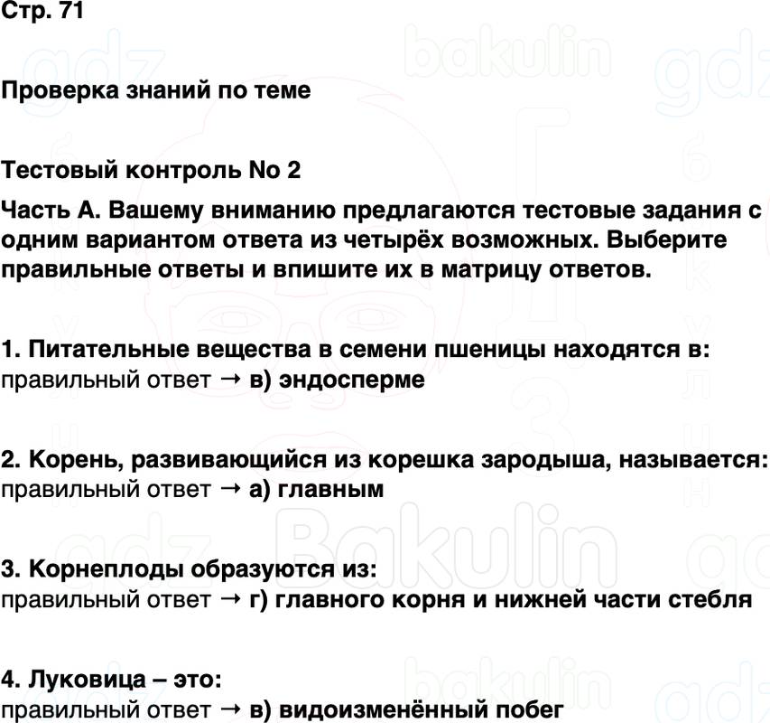 Часть А. Вашему вниманию предлагаются тестовые задания с одним вариантом ответа из четырёх возможных. Выберите правильные ответы и впишите их в матрицу ответов.