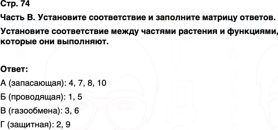 Часть В. Установите соответствие и заполните матрицу ответов.