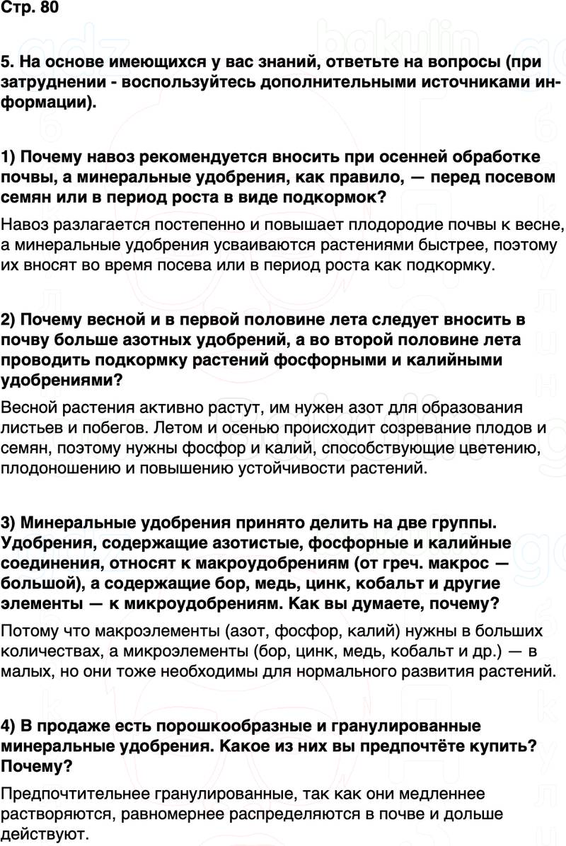 2) Почему весной и в первой половине лета следует вносить в почву больше азотных удобрений, а во второй половине лета проводить подкормку растений фосфорными и калийными удобрениями?