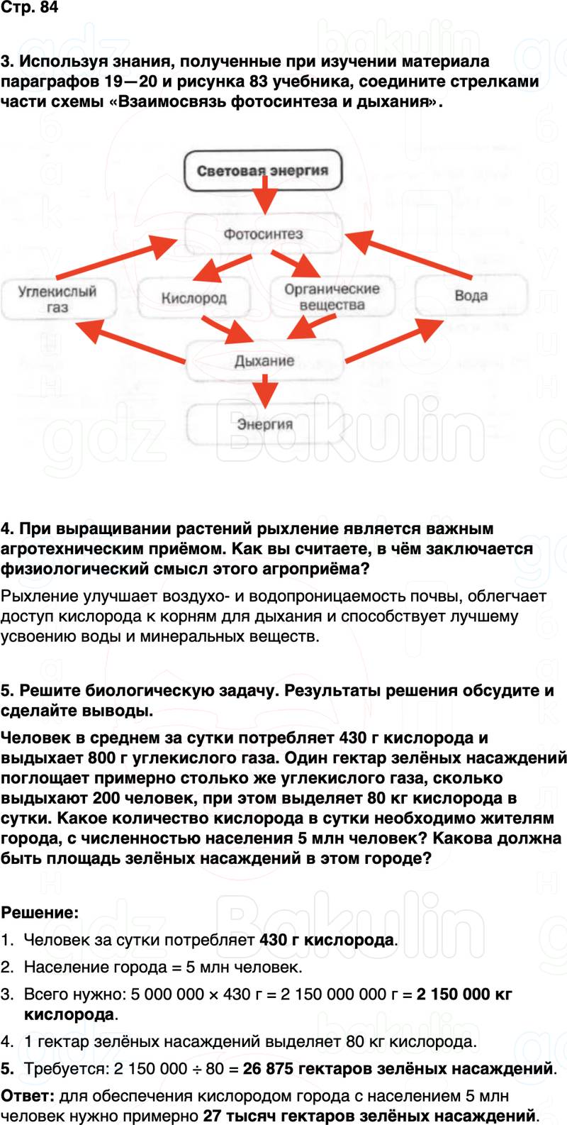 3. Используя знания, полученные при изучении материала параграфов 19—20 и рисунка 83 учебника, соедините стрелками части схемы «Взаимосвязь фотосинтеза и дыхания».