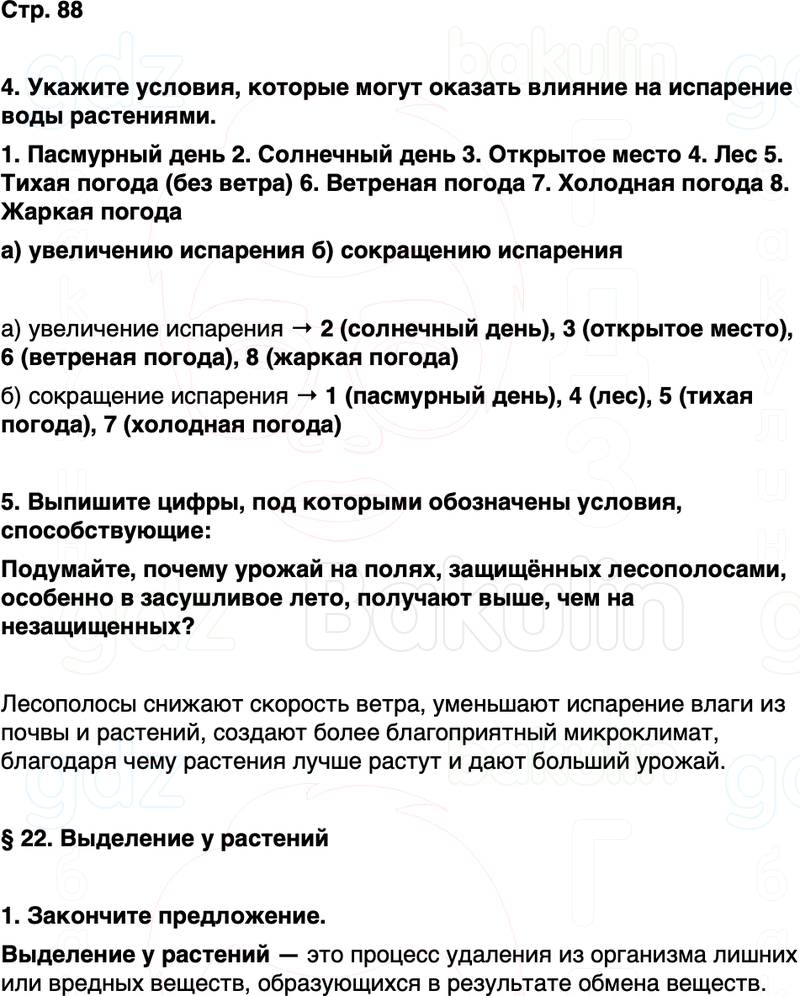 § 22. Выделение у растений