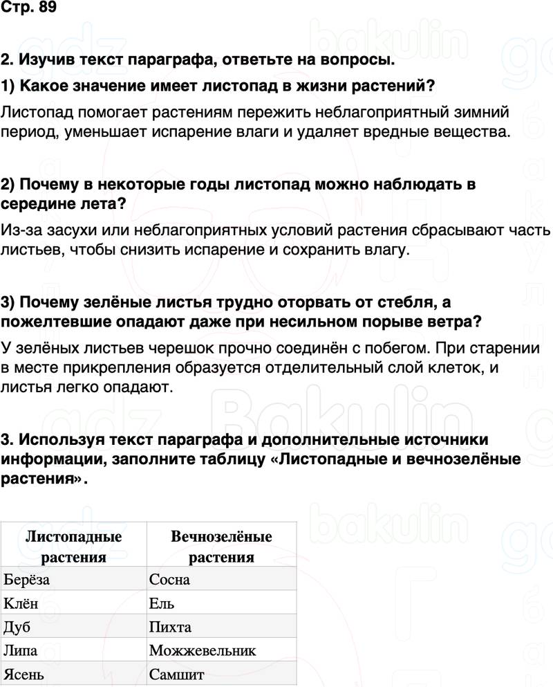 3. Используя текст параграфа и дополнительные источники информации, заполните таблицу «Листопадные и вечнозелёные растения».
