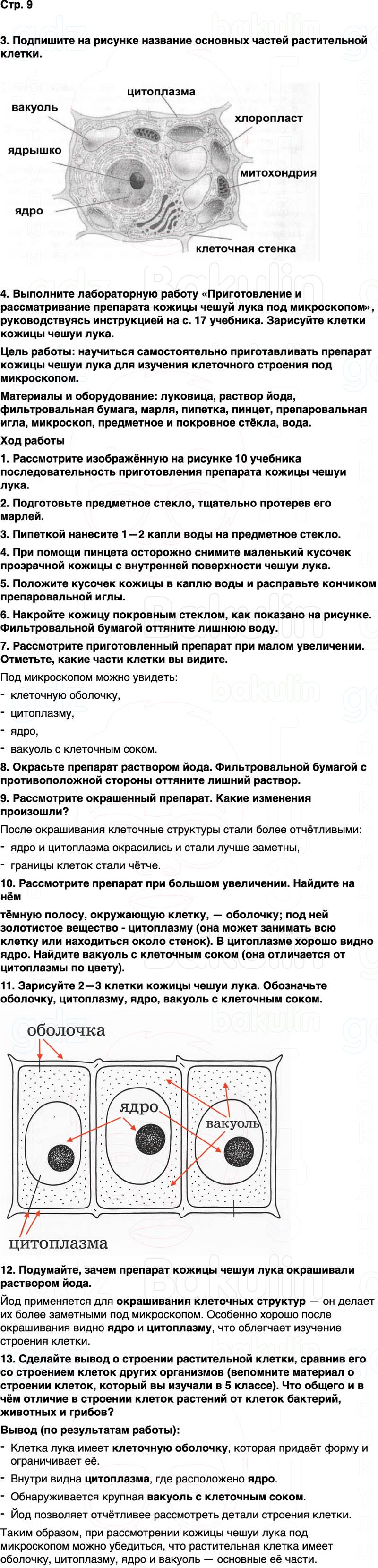 13. Сделайте вывод о строении растительной клетки, сравнив его со строением клеток других организмов (вепомните материал о строении клеток, который вы изучали в 5 классе). Что общего и в чём