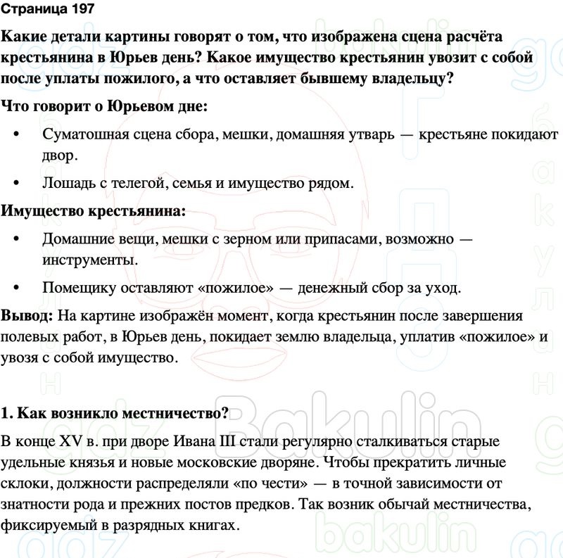 Какие детали картины говорят о том, что изображена сцена расчёта крестьянина в Юрьев день? Какое имущество крестьянин увозит с собой после уплаты пожилого, а что оставляет бывшему владельцу?